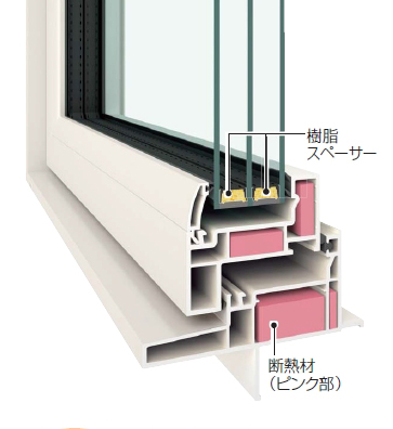 例えば、高性能なアルミや樹脂枠の内部断面構成で中空層の『チャンバー』とスペースがあります。
